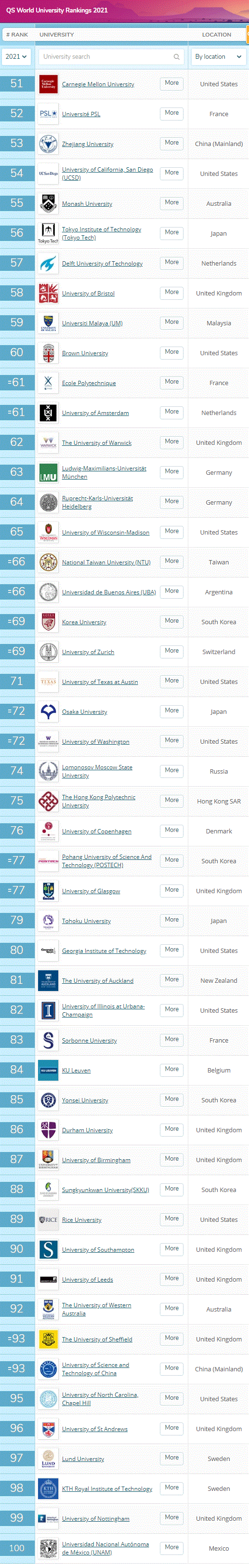 今年依然有六所中国大陆的大学进入QS榜单的TOP100名。清华大学继前年首次冲进前20名后,排名持续上升,今年位列15位。中国香港和中国澳门的大学排名表现都不错。