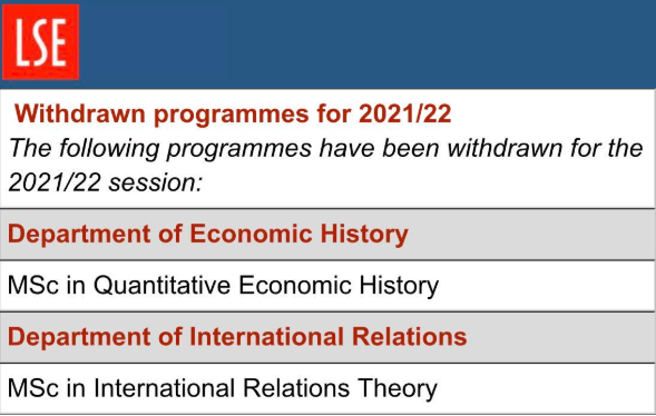LSE2021年的硕士申请将于10月5日开放!将采取分批录取方式,先到先得!且专业还可能在无预警下关闭申请,所以大家真的要抓紧时间了!今年LSE的项目设置做出的调整如下: