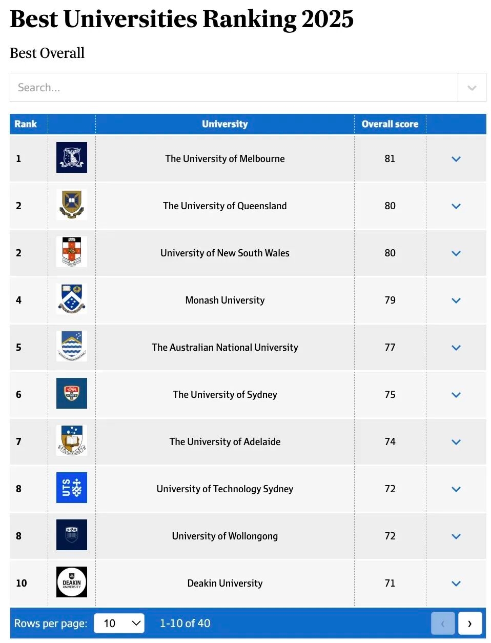 作为一份本土排名,该榜单采用的数据很多来自澳洲当地机构发布的数据,尤其适合将来想留在澳洲发展的同学。