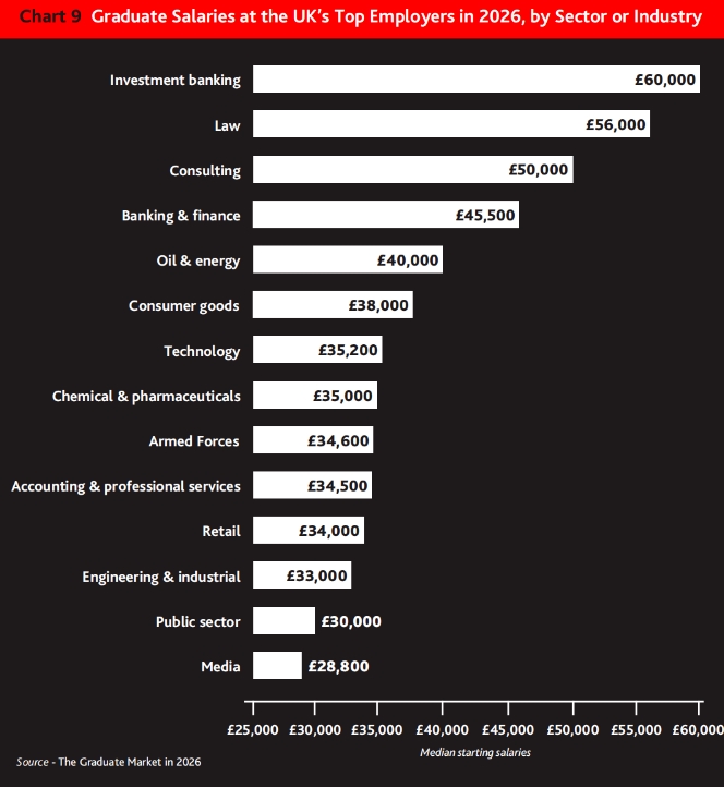 近日,英国权威机构High Fliers Research发布了《2026毕业生就业市场报告》,把最新起薪、最香行业、雇主最爱的大学扒了个底朝天。
